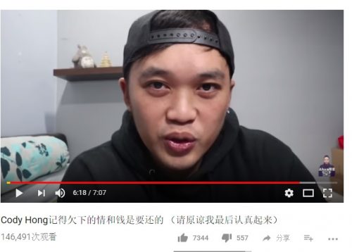 一名阿亚的网红爆料Cody欠对方朋友的钱不还。