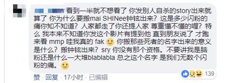 Cody使用韩国团体SHINee已故成员钟铉作为霸凌例子