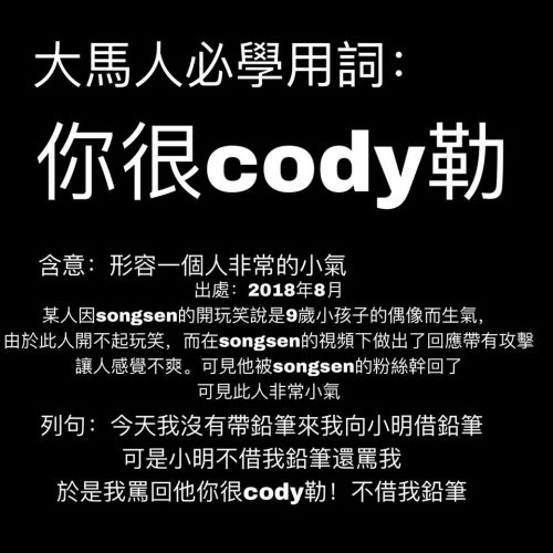 有网民制作恶搞图,标签“你很Cody叻”是形容小气之人。