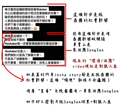 强大的网民就CodyIG内容做分析,认为他借着“宣导”泰国霸凌新闻一事来回应宋圣