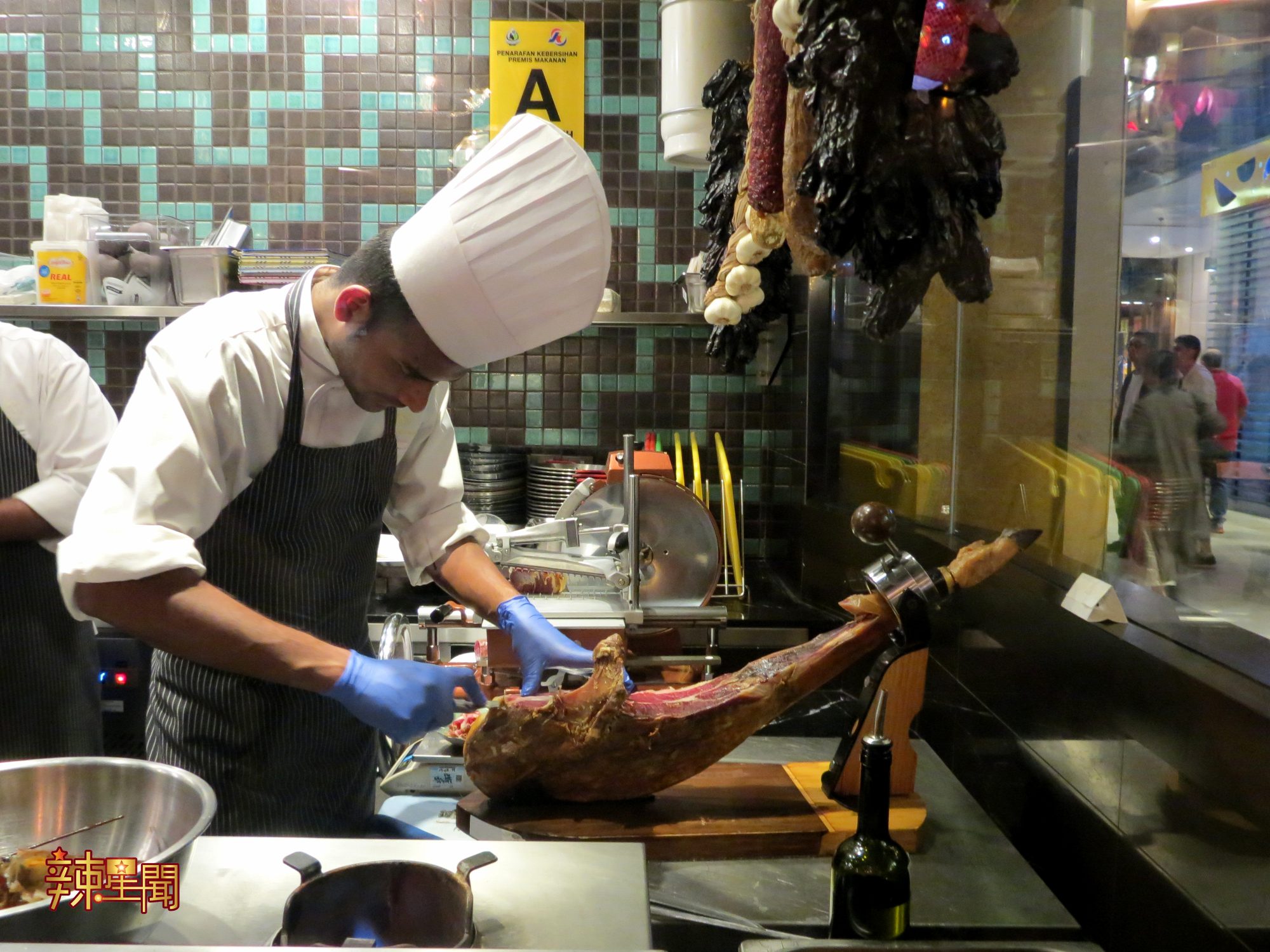 La Fiesta主打的伊比利火腿(Jamon Iberico)是采用西班牙珍贵的伊比利猪只,经风干至少三年或以上而成。伊比利猪主要养殖在西班牙的西南部,以橡果来喂食,所以猪肉会带有特殊的果香。