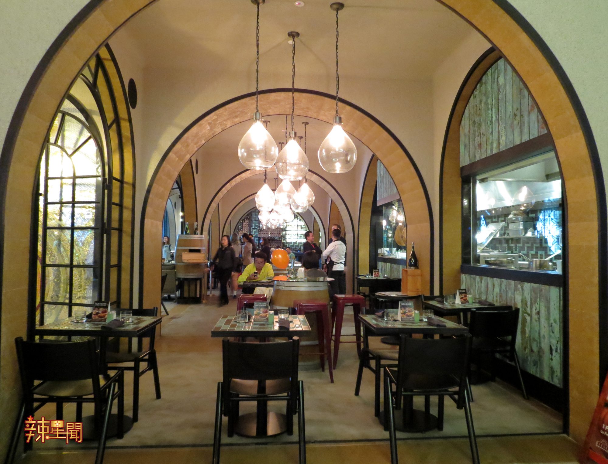 La Fiesta餐厅的装潢以传统的加泰罗尼亚风格为主题,采用彩色瓷砖和土色系的颜色为主,打造出舒适、温馨、又不失西班牙特色的用餐空间。餐厅能容纳85人,而顾客也能观赏厨师们如何在开放式厨房烹煮特色风味的西班牙菜肴!