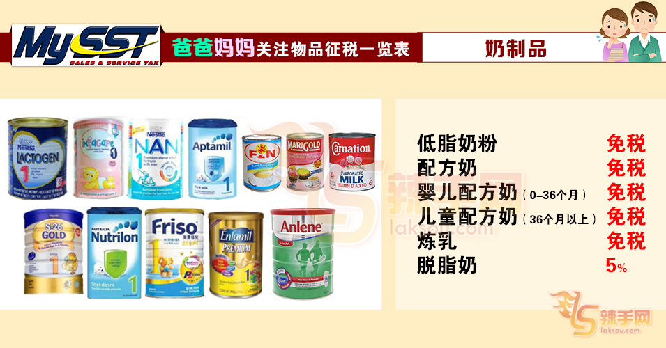 婴儿配方奶,儿童配方奶及一般配方奶都没有征收SST