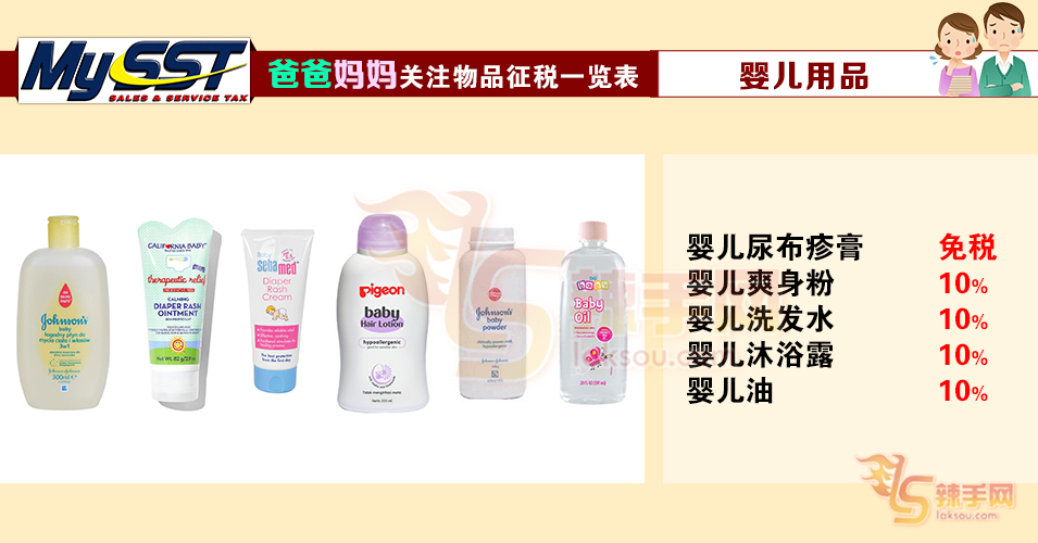 婴儿尿疹膏免税,但其他如婴儿油及沐浴露等都征10%