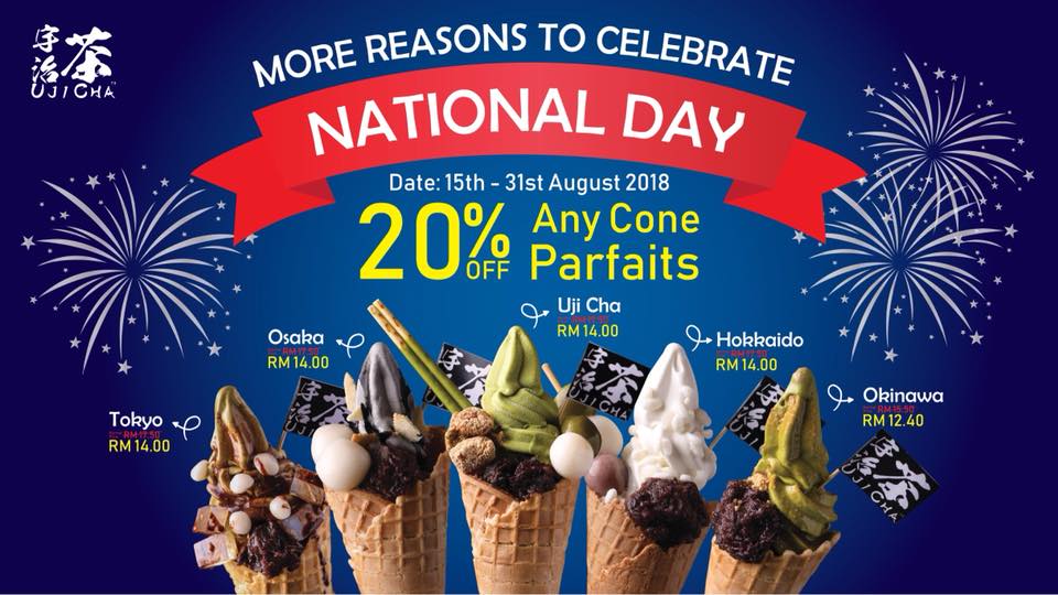 UJI CHA Malaysia也推出国庆促销!从即日起至8月31日,购买任何口味的Cone Parfait即可获得20%折扣!