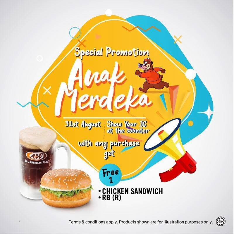 A&W推出国庆促销!只要你是在8月31日出生,即可获得免费鸡肉三明治及RootBeer!