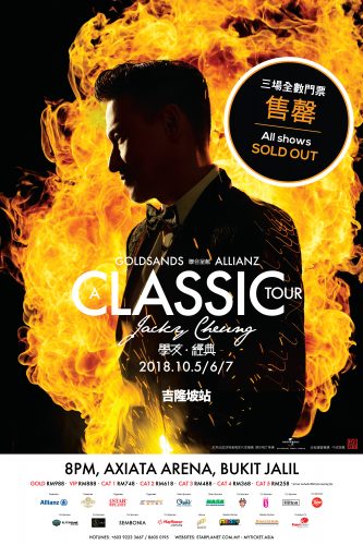 一连三场《A CLASSIC TOUR 学友·经典》巡回演唱会即将在 10 月 5、6 与 7 日,晚上 8 点,于吉隆坡 Axiata Arena 隆重引爆。欲知详情,请拨 03-9223 3667 或浏览 www.starplanet.com.my