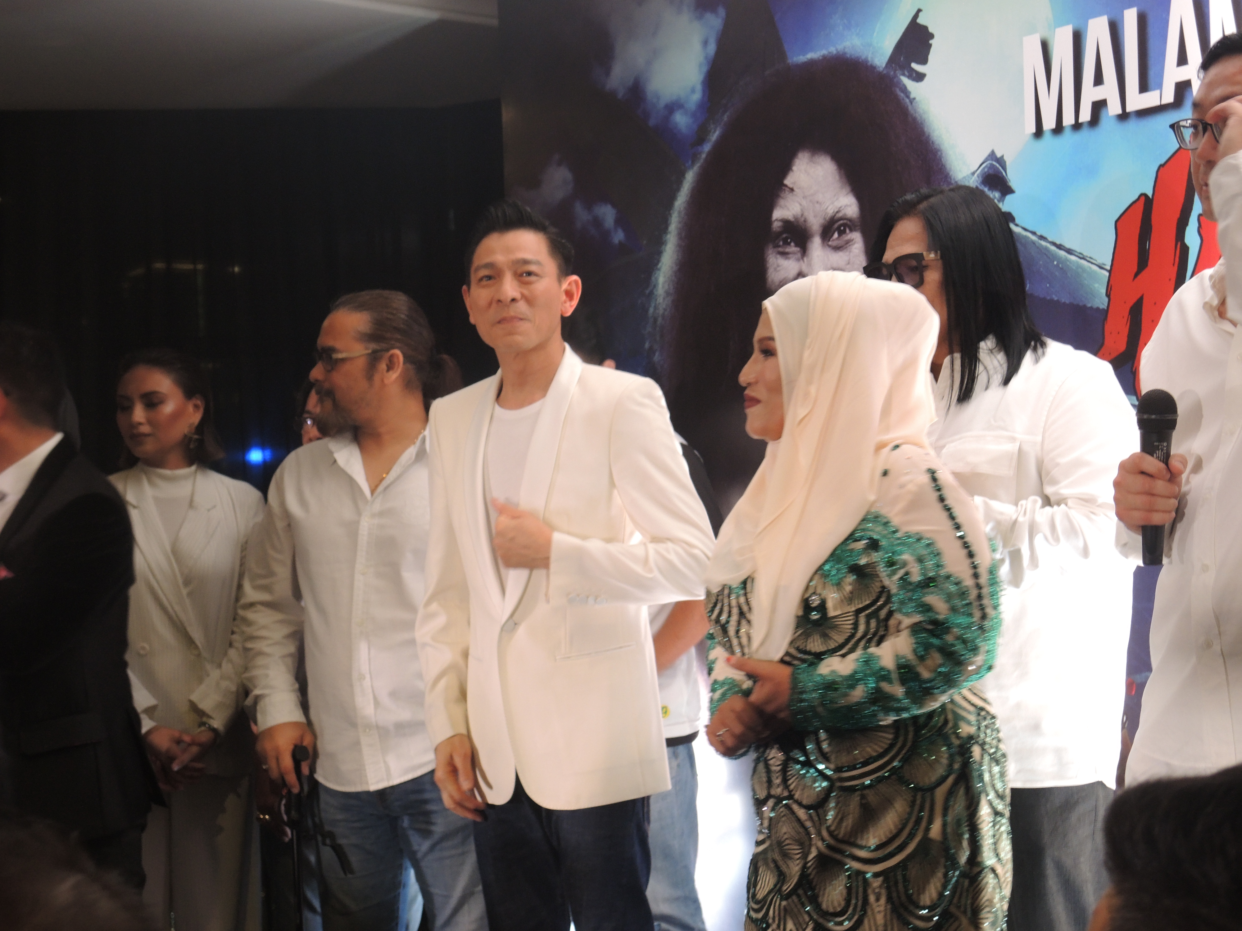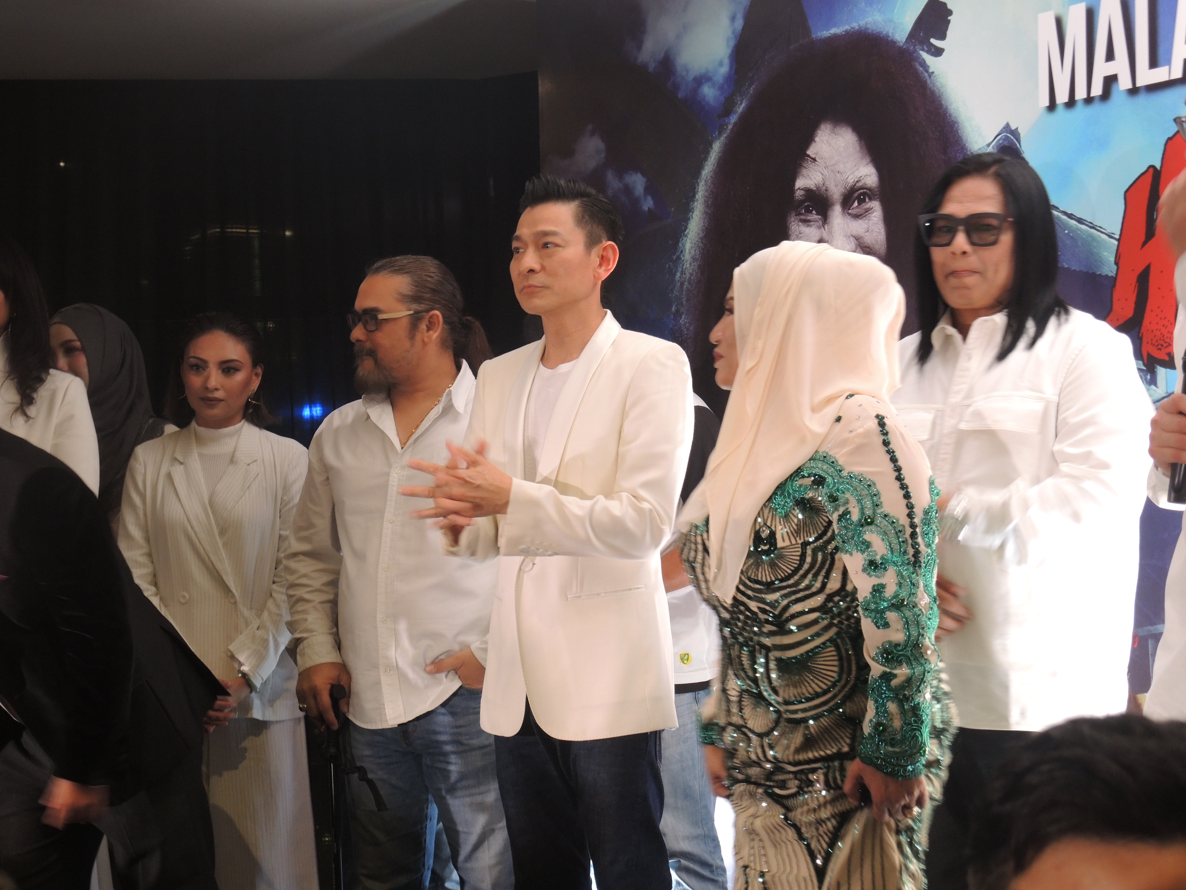 刘德华在记者会舞台上不设访问环节,他只是简单并且很开心对在场大家说:“希望可以跟你们再一次、再一次、再一次合作。”接着就进行拍照环节,值得一提的是,导演Mamat Khalid脚受伤行动不便,他偶尔会照顾扶住对方,当有女演员下台,他也会发挥绅士之手,深怕对方不小心摔跤。约莫五分钟后,在多位保镖的维护下离开,场面一片混乱,碰巧站在其身旁的小编问他何时离开大马,他转过身回答:“明天离开!”