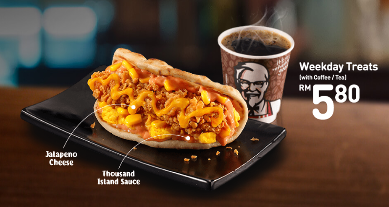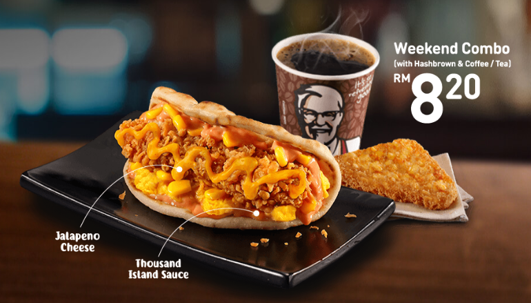 Zinger Egg Flip A la Carte只需RM5.30。Weekday 套餐则是只需RM5.80,套餐包含一个Zinger Egg Flip和一杯咖啡或茶。Weekend 套餐也只需RM8.20,套餐包含一个Zinger Egg Flip、一杯咖啡或茶,还有一个Hashbrown,超划算的啦!
