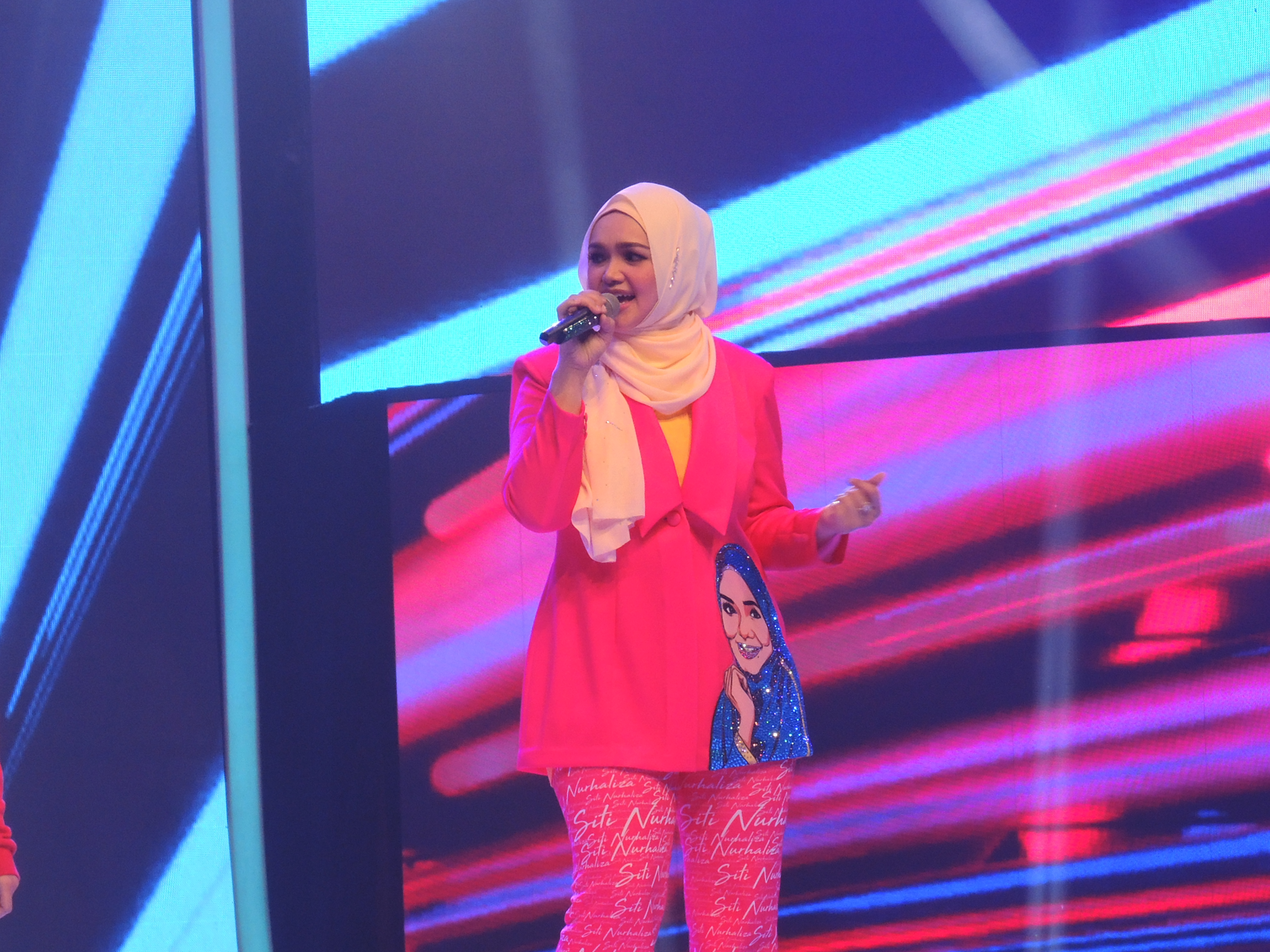 天后拿督茜蒂诺哈丽莎压轴出场演出,亮点除了以标准的华语演唱一小段邓丽君经典之作《月亮代表我的心》,她还身穿印有自己卡通肖像的绚丽潮衣唱跳歌曲《Jika Kau Tak Datang》,超有看头,现场也许多歌迷出席力挺。三月份卸货宝宝的她透露目前已经复出工作,据悉今天她也是百忙之中抽空出席演出,活动结束前已经冲冲离开。