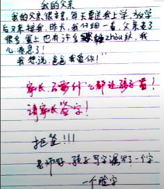 老师看后留下不满的评语:“家长,不要什么都让孩子看!请家长签字!”应该是觉得那句“蛋上也有许多皱纹”,让老师觉得不妥,不过家长反驳:“老师好,孩子写字漏写了一个字,一个脸字。”