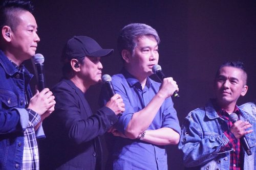 他们也在对已故的“音乐巨人”谢继麟献上敬意,山脚下指当年因激荡工作坊的张映坤和谢继麟才踏入乐坛,以特别嘉宾亮相的黄一飞,谈到亡友时都难掩哀伤,直称很想念对方,更穿上印着谢的肖像的T恤上台,还配有“一辈子玩音乐,一辈子做兄弟”的字眼,邓智彰也在台上发表对这位好友的感受,最后黄一飞以他和谢继麟一起写的《兄弟》来纪念这段友情!
