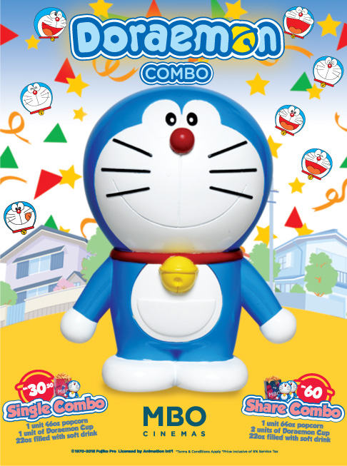 MBO新推出的哆啦A梦水瓶爆米花套装,比起其他之前推出的主题系列水瓶,来得划算!套装共分为两种,包括Single Combo包含1份爆米花及1个装有饮品的哆啦A梦水瓶(RM30.50);Share Combo则包含1份大型爆米花及2个装有饮品的哆啦A梦水瓶(RM60)。