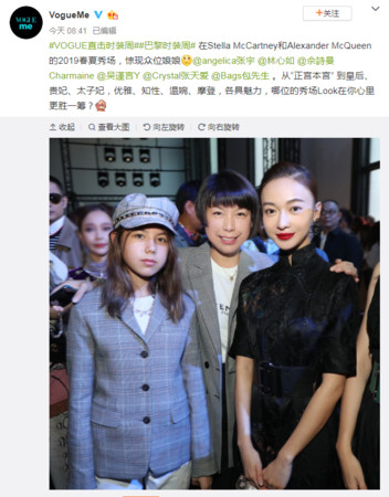 巴黎时装周如火如荼进行中,许多明星都飞往当地看秀,在2日凌晨,林心如、佘诗曼、吴谨言等人齐聚亮相,堪称是《延禧攻略》和《还珠格格》主角难得同框的一刻,恰好有网友在她们对面捕捉下现场画面,哭笑不得地说:“压力好大!我对面坐着乾隆皇帝一家子!”