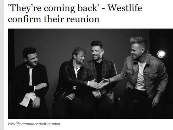 Westlife西城男孩在社交平台宣布正式重组回归,并将发行新专辑及未来进行巡回演出。