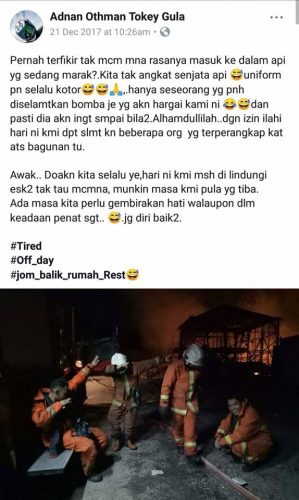 他在去年12月时,曾上载一张救援后的图,指这一天冲进了火场,把几个受困者救了出来,感到非常开心。
