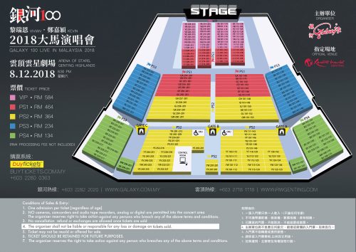 票价:VIP RM584, PS1 RM464, PS2 RM364,PS3 RM234,PS4 RM134 (不包含RM4的手续费)
