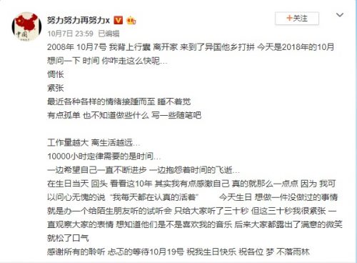 昨7日是张艺兴在的生日,他在微博发长文为自己庆生。他还在文中回忆了自己出道至今的心路历程。