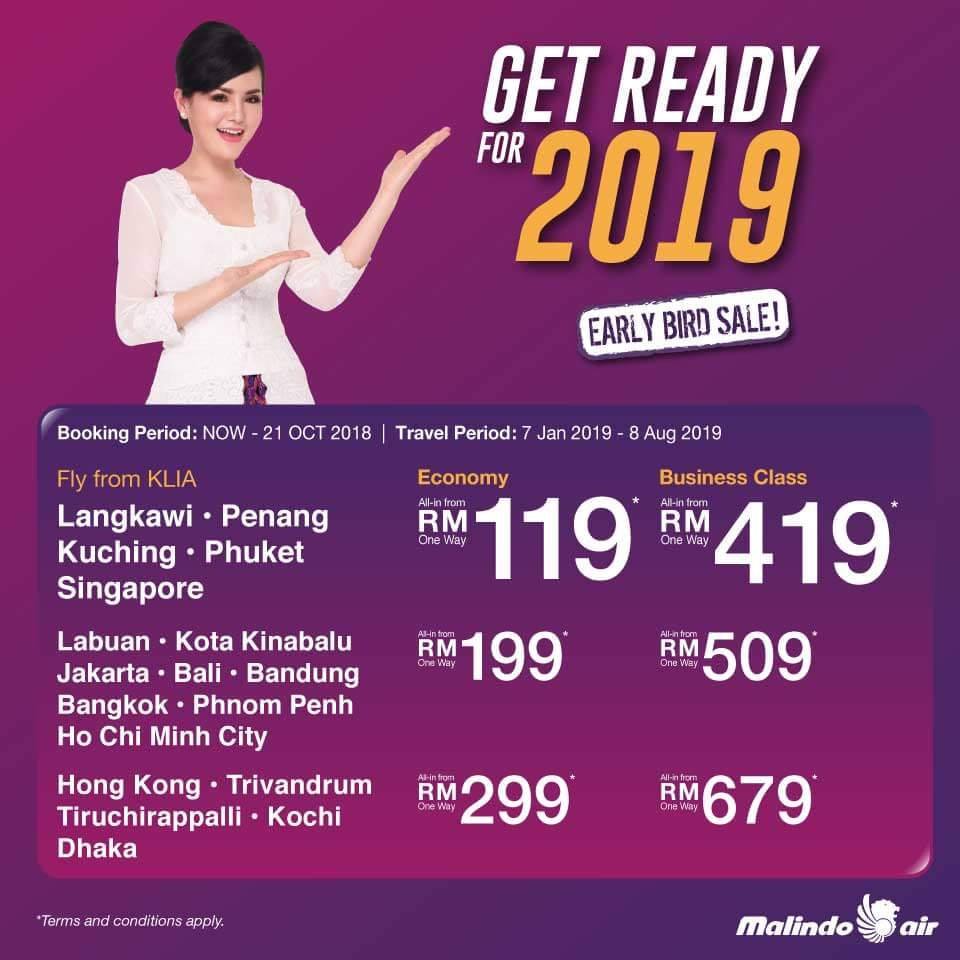 Malindo Air推出机票促销 最低只需RM16 9 Oct , 2018 | 吃喝玩乐 2019年即将到来,想出国旅行的朋友购买机票了吗?Malindo Air从即日起,将会推出2019年机票促销,基本票价最低只需RM16! 从即日起至10月21日,Malindo Air将推出机票促销。根据官方公布的机票价格表显示,吉隆坡飞往新加坡只需RM99、飞往普吉岛RM119、飞往曼谷RM139、飞往香港RM249等!出发日期是从2019年1月7日至8月8日。 计划出国的朋友,记得去浏览Malindo Air看看还有什么其他便宜的机票咯! 分享