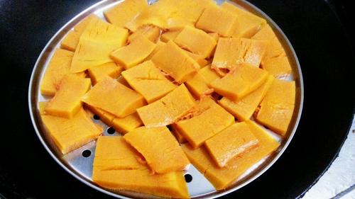2.南瓜去皮,切薄片放入锅里隔水蒸8分钟
