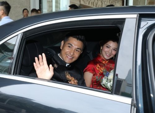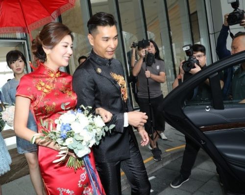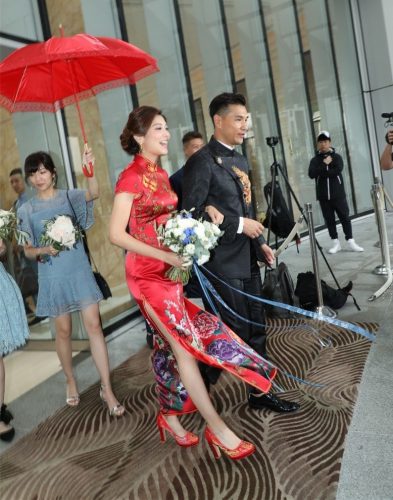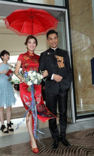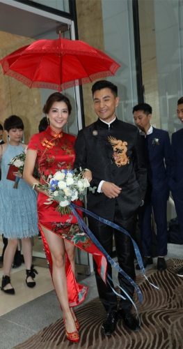 TVB视帝陈展鹏大婚 妻子单文柔中式旗袍秀美腿 13 Oct , 2018 | 娱乐前线 41岁的TVB男星陈展鹏于香港某酒店迎娶28岁单文柔。现场一对新人身穿中式礼服恩爱现身,满面春风地接受身边人的祝福。 早上9点多,陈展鹏便到客房准备见新娘子。10点左右,一众好友及亲戚先一步离开酒店登上宾客车,而穿上中式礼服的一对新人随后步出,两人一脸幸福,不时对望,笑容非常甜美。 现场不时有风吹过,让新娘子的裙摆飘逸,露出修长美腿,非常性感。陈展鹏对爱妻呵护备不至,登上花车离开酒店时更伸手护住单文柔,风度翩翩。 分享
