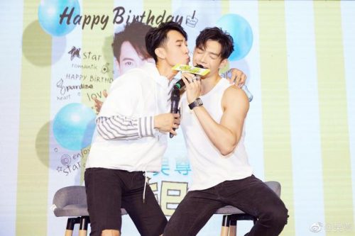 辰亦儒现身吴尊生日会两人开心合影。