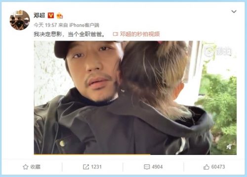 邓超随后又留言开玩笑,似乎并不是认真打算要息影。