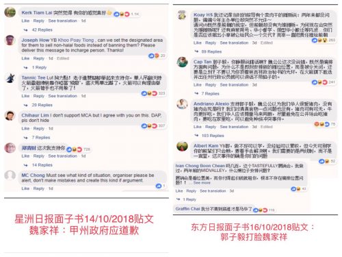 这是无的放矢的?不是的,看看纸媒《星洲日报》、《东方日报》的魏家祥言论贴文下的留言,《星洲日报》那篇魏家祥叫甲州政府就美食展一事道歉,支持他的留言竟然超过2000网民去点赞,至于《东方日报》的行动党行政议员郭子毅“打脸”魏家祥贴文,底线的网民留言反而狠狠的打脸郭子毅。