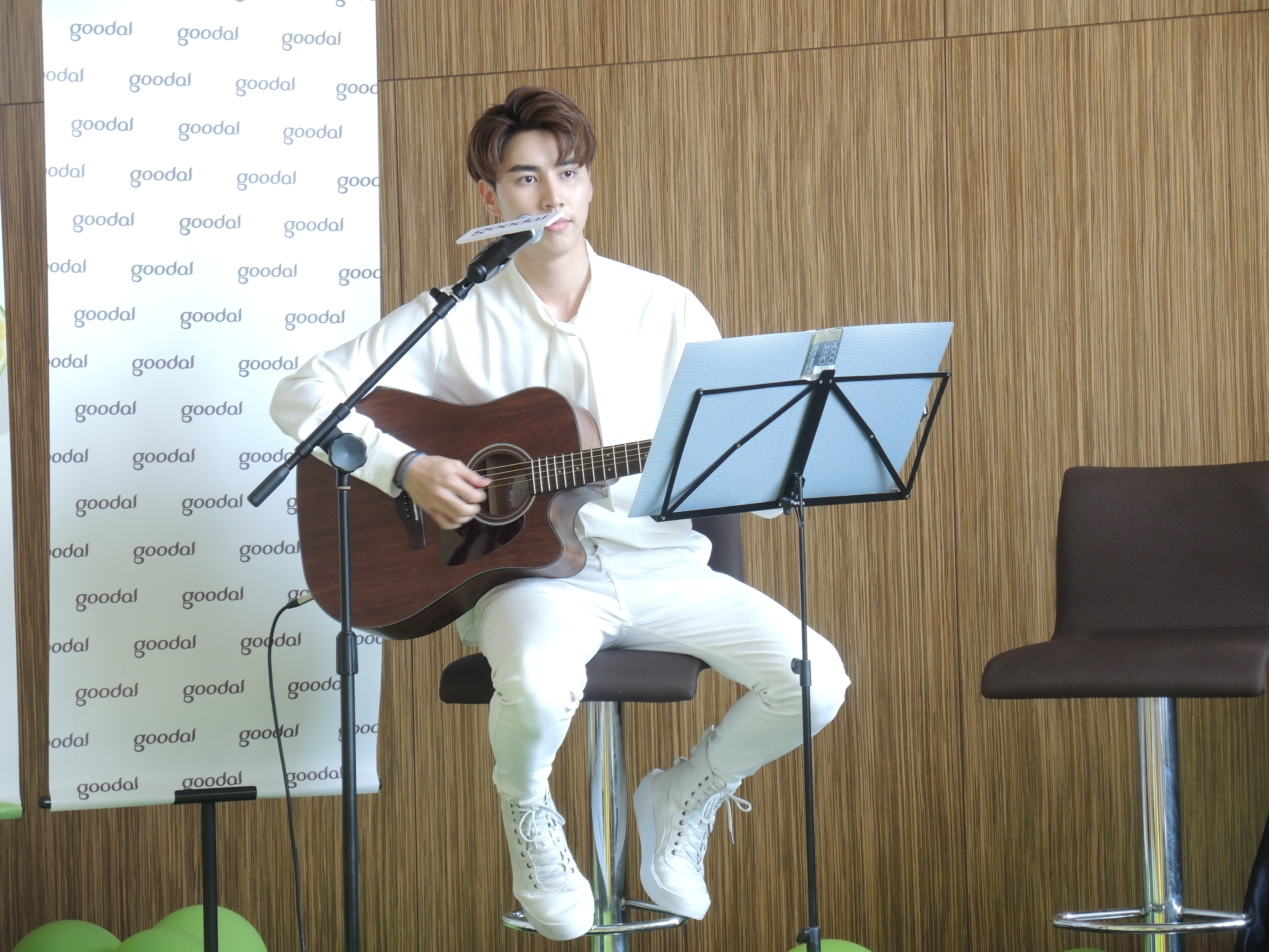 Uriah在记者会现场弹唱由自己创作的新歌《Forever Young》。