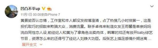 此外该名网友更惊爆黄景瑜演艺工作内幕,指控前经纪人和黄景瑜出卖肉体交换角色,像是韩寒的戏还有综艺节目《放开我baby》,更嘲讽资源怎么来的还得亏了经纪人刘铮大功臣,对于诸如此类严重指控,让黄景瑜演艺事业陷入危机。