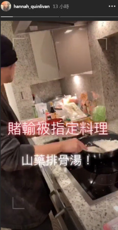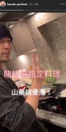 昆凌在限时动态打上“赌输被指定料理!山药排骨汤!”可以看到周杰伦戴着毛帽,相较于手上多是拿着麦克风,他这次洗手做羹汤,拿起锅杓在流理台前忙东忙西,看到镜头在拍,维持一贯帅气表情比YA,转头继续炖煮食物。