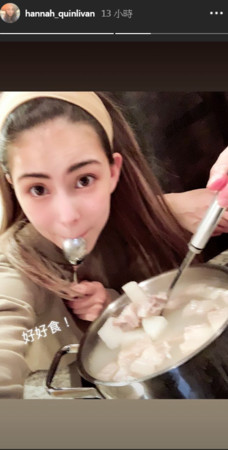 周杰伦乖乖接受完惩罚后,昆凌事后PO出他的成果照,只见她戴上宽发箍,露出V字瓜子脸,似乎直接以逼近素颜的容貌入镜,一发现老公煮好山药排骨汤、捞起丰盛配料,立刻上前试吃,“好好食!”把汤匙放在嘴巴下方,露出满足神情。