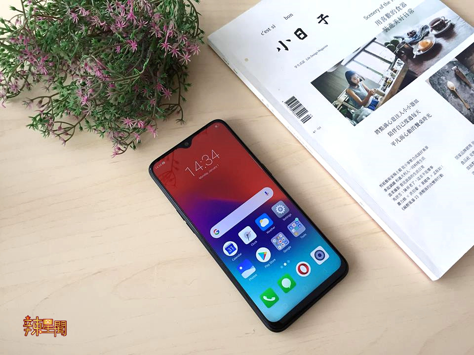 转过背面,Realme 2 Pro的黑海配色很有时尚感,美中不足的是logo看起来好像有点大!此外,这款手机的背面是经过13至15轮的分段层压技术处理而成的,耐冲击且高色饱和,让外观依然呈现出如透明玻璃的质感!除了支援AI面部识别,Realme 2 Pro也贴心地附上指纹识别器,让用户多一项选择!