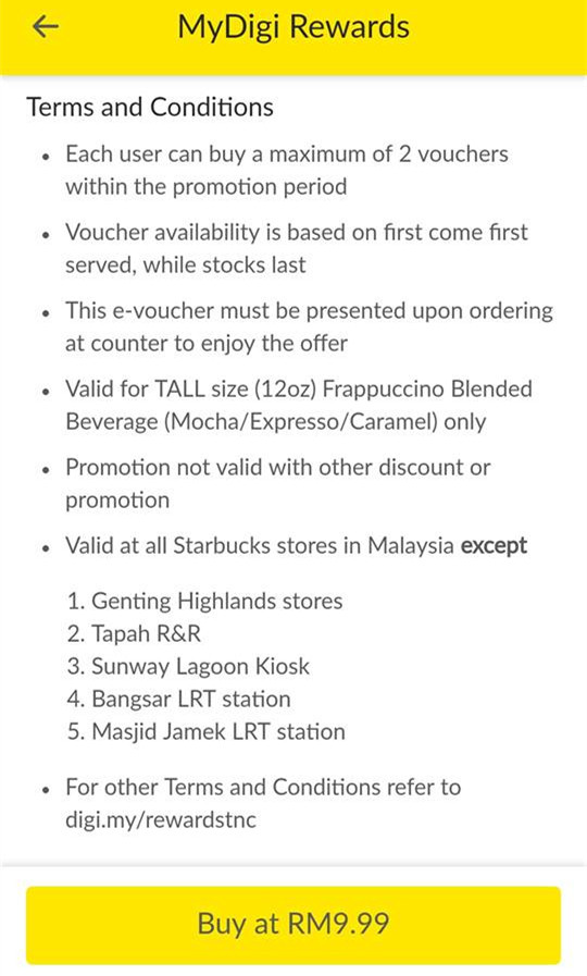 Digi用户只需打开MyDigi应用程序,然后选择Rewards再点选星巴克Frappucino即可!不过需要注意的是,每名Digi用户最多可获得两张促销券,先到先得送完为止!
