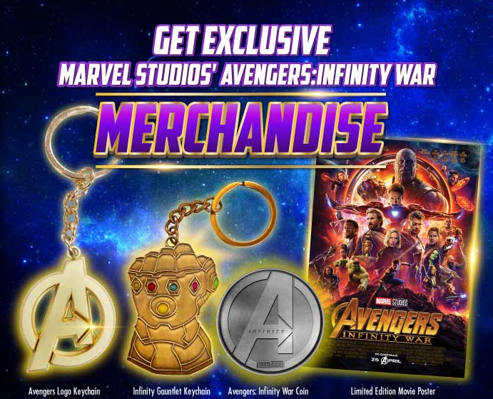 该电影将于4月25日上映,而GSC电影院也会配合推出Avengers英雄人物造型杯,其中有钢铁侠、蜘蛛侠及萨诺斯可以供你选择。你只要上网或前往GSC柜台购买即可。