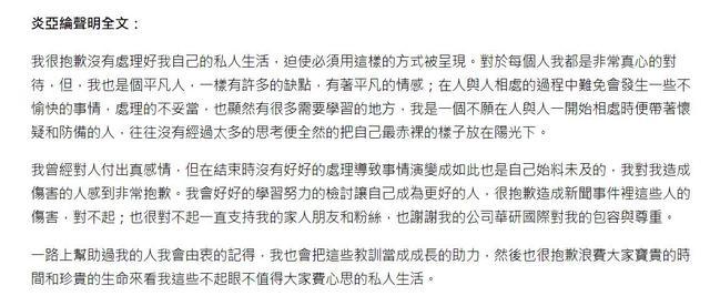 炎亚纶回应全文如下: