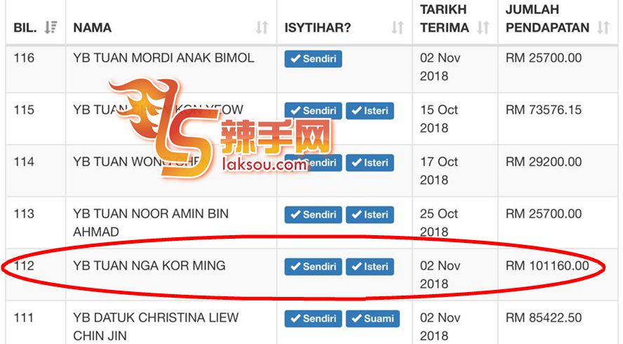 随着希盟正副部长和部分国会议员陆续公布收入后,反贪污委员会日前再度更新有关名单,倪可敏夫妇以月入10万1160令吉成为榜首,超越财政部长林冠英伉俪的8万6464令吉92仙。