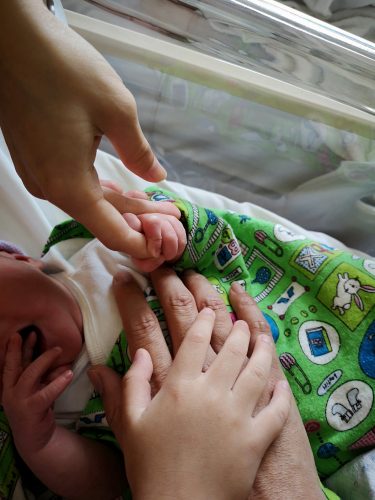 颜薇恩在今年生日(6月9日)当天宣布怀孕4个月半,昨日更于面子书上上传一家四口手握手的照片,宣佈宝宝终于出世与大家见面了。虽然目前暂未为宝宝取名字,但首次当哥哥的Jo则非常疼爱妹妹,并为妹妹取小名为“Happy Girl”,大家都对宝宝疼爱有加。