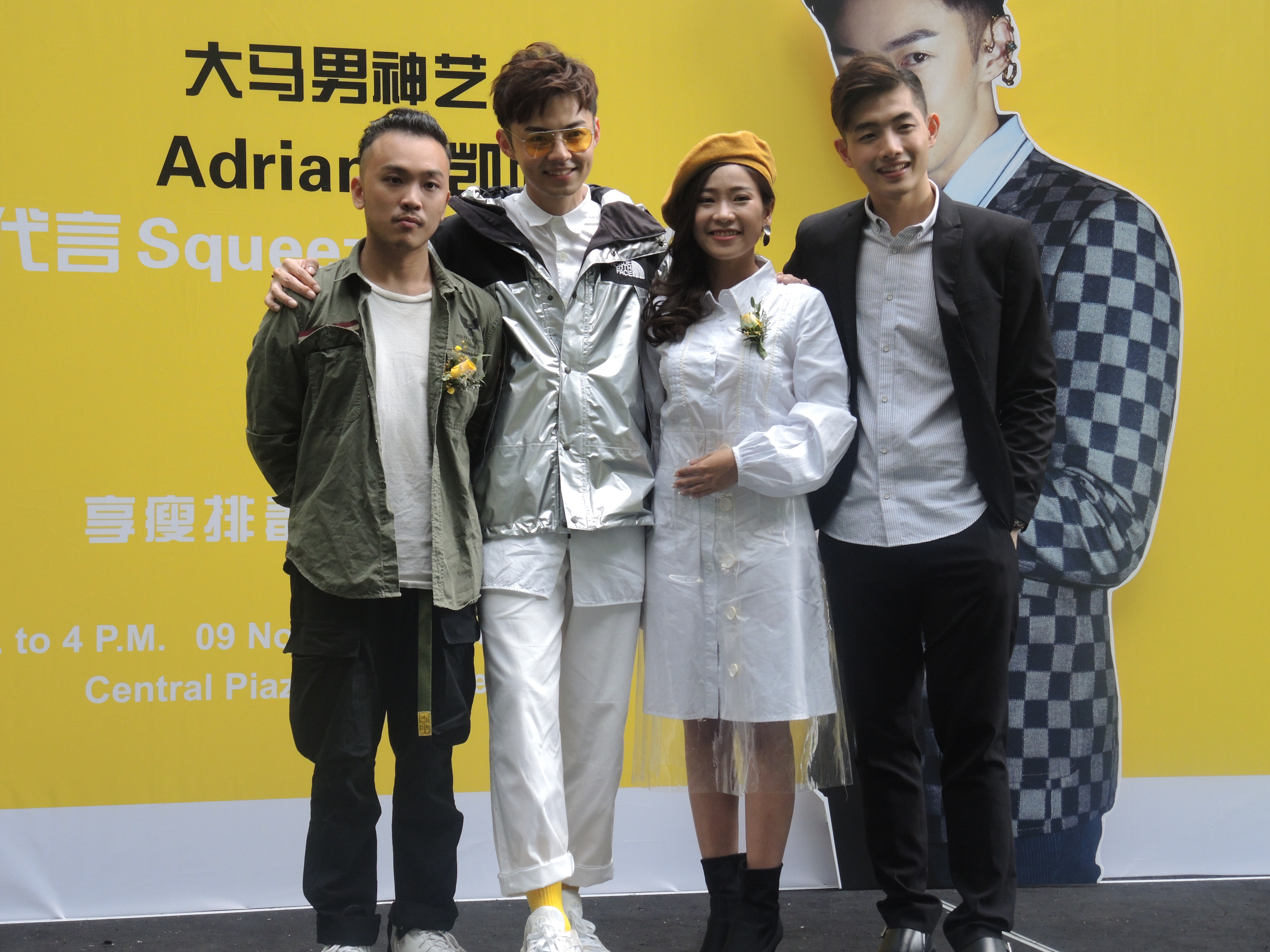 微电影导演Kenzir(左起)、陈凯旋、Shane柯宣亦与杨钦进,电影预计12月中旬在网络播出。被问到瘦身产品代言费,Adrian不肯透露,仅笑笑表示价格挺不错。
