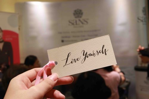 “可悲的是我的母亲是一位护士,但却缺乏照顾乳房的知识。”忆起母亲抗癌的过程,让她不禁落泪。母亲在离世前在病床上曾和她说过一句话,“爱自己多一点”,让她印象非常深刻。因此希望藉由《从心爱乳房》的活动给大家一些启发与咨询的机会。 Cindy 陈思颐也亲手写了“Love Yourself”小卡送给现场参与的朋友 。她也希望女性别忽略自己 ,要多一点爱自己。