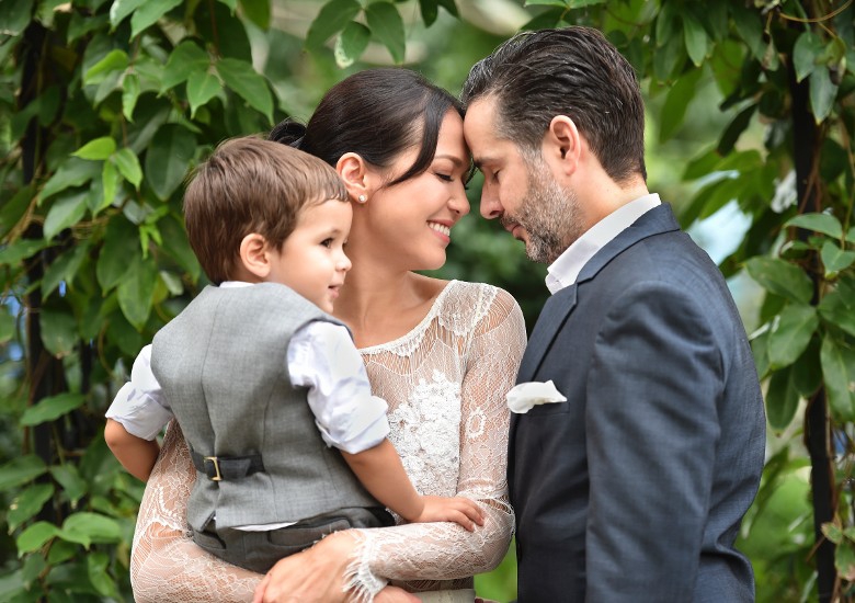 穿上由泰国设计师设计的白色简约婚纱的贝安琪,抱住儿子Sebastian,一家三口合照,露出甜蜜笑容。贝安琪称:“我们的婚礼是如此美丽。有我们的儿子在这里,是最美丽的事情;加上有我们最亲密的朋友出席,让这个简单而隆重的婚礼变得更有趣和快乐。我们充满了爱和幸福,感谢出席我们婚礼的每位亲友。”