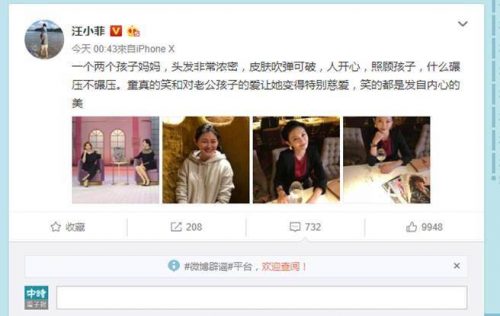 汪小菲今深夜在微博晒“老公视角”,只见大S对着镜头甜笑,其中一张穿帽T的大S更是嫩如女大生,汪小菲认为,大S身为两个孩子的妈妈,头发茂密、皮肤吹弹可破,并回呛网毒舌“什么碾压不碾压”。