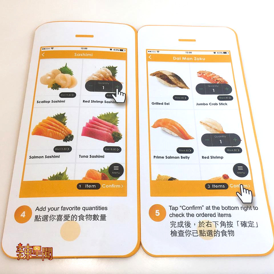 来自日本的元气寿司与一般的回转店,最不同的地方就是你需要通过扫描QR Code的方式进行点餐!而且,这里的寿司是利用火车载送,只要你用手机点餐完毕,寿司就会在2至3分钟内送到!