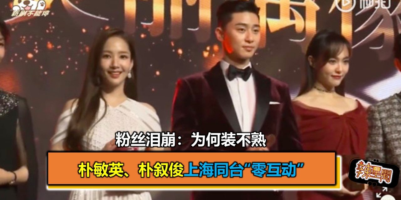 朴叙俊、朴敏英28日现身上海时尚活动,两人受颁年度闪耀美丽偶像奖,同台领奖,却被观众发现眼神零交流、几乎没有互动,这段不到2分钟的颁奖影片疯传,不仅如此,两人连离开颁奖活动都是一前一后退场,令剧迷难过表示“为何装不熟”。
