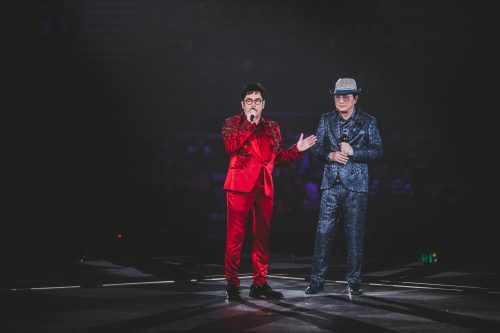 两位唱将除了互相演绎彼此歌曲,也唱了一些昔日巨星的经典歌曲表示致敬,如邓丽君的《我 只在乎你》、陈百强的《一生何求》与 Beyond 的《光辉岁月》。“校长“也一度感性地说 道,“人生有很多值得回忆的片段,希望今晚的片段在你心里占有一席之位。” 让一路支持 他们的歌迷现场激动不已,热泪盈眶。