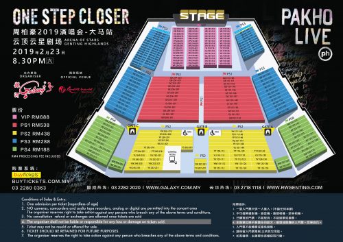 票价: VIP RM688,PS1 RM538,PS2 RM438,PS3 RM288, PS4 RM188