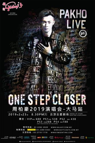 由银河集团主办,周柏豪《One Step Closer》2019 演唱会 – 大马站,将于 2019 年 2 月 23 日(星期六),晚上 8 时 30 分,让你在云顶云星剧场更贴近男神,带领你进入一场只属于他的个人演唱会!