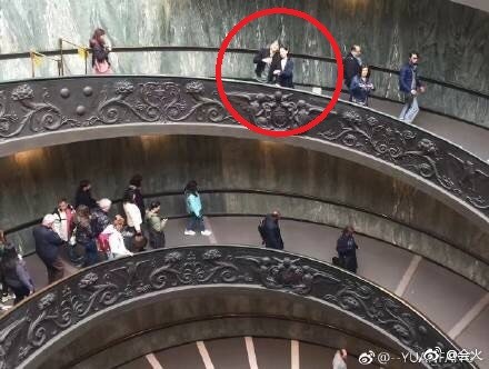 有网友惊曝和家人正在义大利旅游时,没想到居然会在神圣的梵蒂冈,巧遇热恋中的王大陆与姜汉娜。