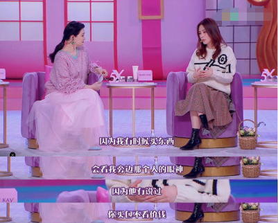 阿娇在节目中聊到和老公赖弘国的相处,自曝自己买东西会看老公的眼神,老公曾说“你买包不看价钱”,因此现在会顾虑老公的感受,不敢买。