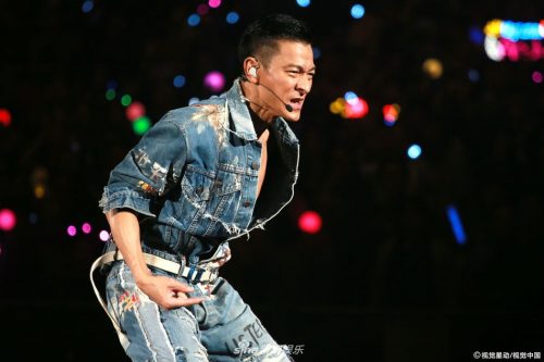 华仔以一身白色唐装大袍气派出场,并献唱《预谋》,57岁的他随后又脱去大袍展现精壮手臂肌打鼓,帅气逼人;接着他换上粉色唐装唱《笨小孩》,并感性说:“八年前生的(小孩)都已经8岁啦,我好想感受下七至八年前有过的掌声。”索性躺在地上感受大家掌声,提到去年坠马事件,他则说 :“我已经忘记了,你们还记得吗?我都老啦。”